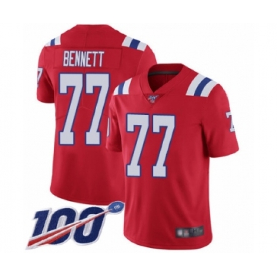 >Men's New England Patriots #77 Michael Bennett Red Alternate Vapor Untouchable Limited Player 100th Season Football Jersey
