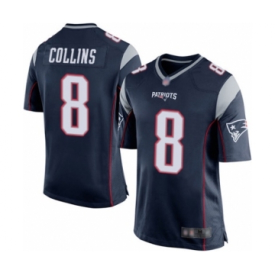 >Men's New England Patriots #8 Jamie Collins Game Navy Blue Team Color Football Jersey