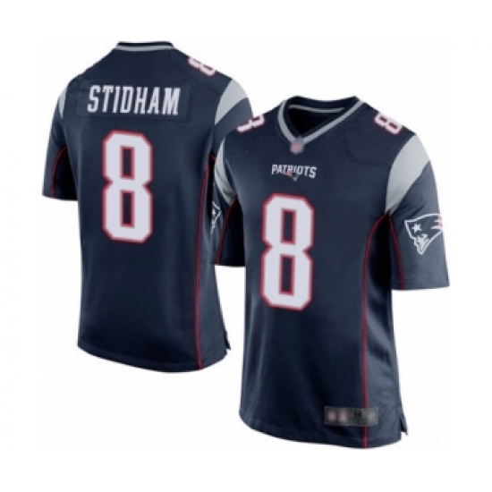 >Men's New England Patriots #8 Jarrett Stidham Game Navy Blue Team Color Football Jersey