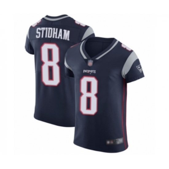 >Men's New England Patriots #8 Jarrett Stidham Navy Blue Team Color Vapor Untouchable Elite Player Football Jersey