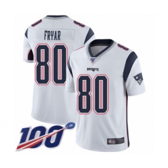 Men's New England Patriots #80 Irving Fryar White Vapor Untouchable Limited Player 100th Season Football Jersey