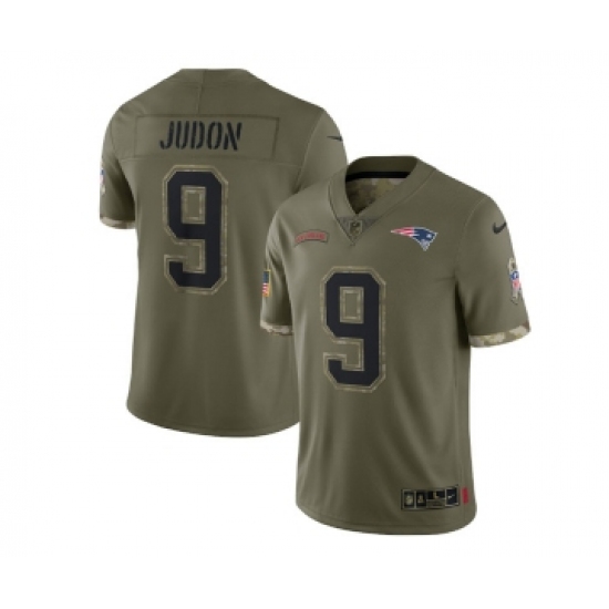 >Men's New England Patriots #9 Matt Judon 2022 Olive Salute To Service Limited Stitched Jersey