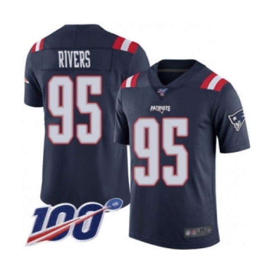 Men's New England Patriots #95 Derek Rivers Limited Navy Blue Rush Vapor Untouchable 100th Season Football Jersey