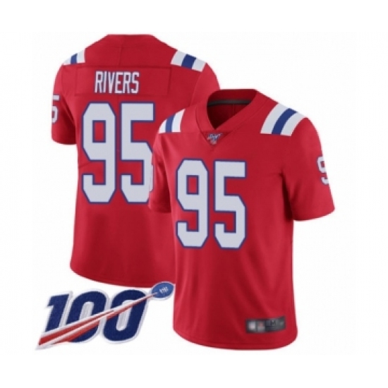 Men's New England Patriots #95 Derek Rivers Red Alternate Vapor Untouchable Limited Player 100th Season Football Jersey