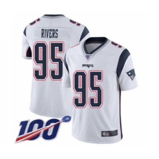 Men's New England Patriots #95 Derek Rivers White Vapor Untouchable Limited Player 100th Season Football Jersey