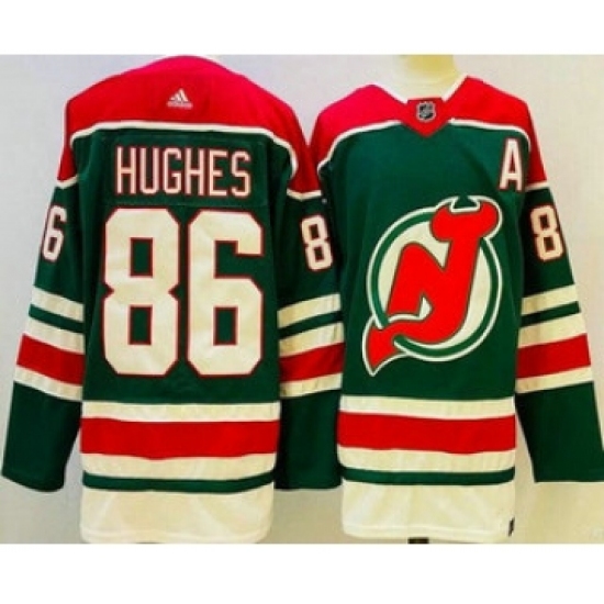 Men's New Jersey Devils #86 Jack Hughes Green 2021 Reverse Retro Authentic Jersey