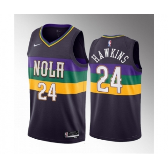 Home>NBA>New Orleans Pelicans>Jordan Hawkins>Men's New Orleans Pelicans #24 Jordan Hawkins Purple 2023 Draft City Edition Stitched Basketball Jersey