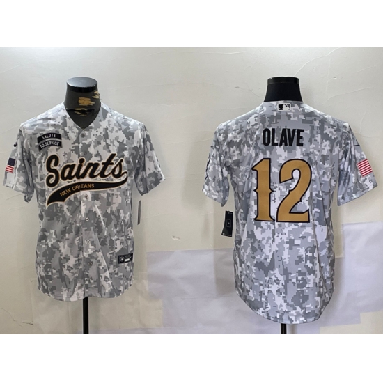 >Men's New Orleans Saints #12 Chris Olave Arctic Camo 2024 Salute to Service Stitched Baseball Jersey