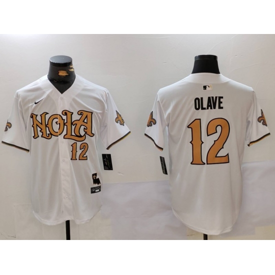Men's New Orleans Saints #12 Chris Olave Number White Nola Baseball Jersey