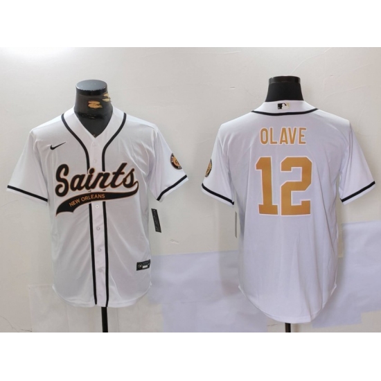 >Men's New Orleans Saints #12 Chris Olave White Cool Base Stitched Baseball Jersey