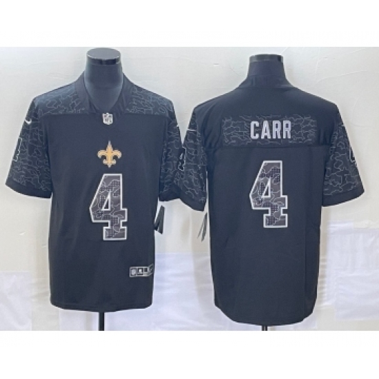 >Men's New Orleans Saints #4 Derek Carr Black Reflective Limited Stitched Football Jersey