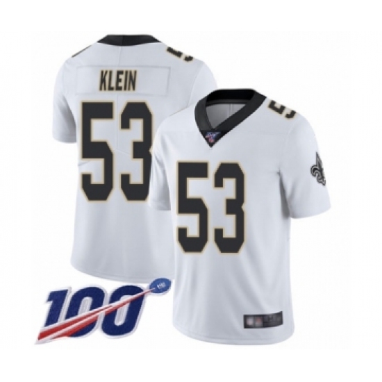 >Men's New Orleans Saints #53 A.J. Klein White Vapor Untouchable Limited Player 100th Season Football Jersey