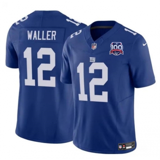 >Men's New York Giants #12 Darren Waller Blue 2024 F.U.S.E. 100TH Season Vapor Untouchable Limited Stitched Jersey