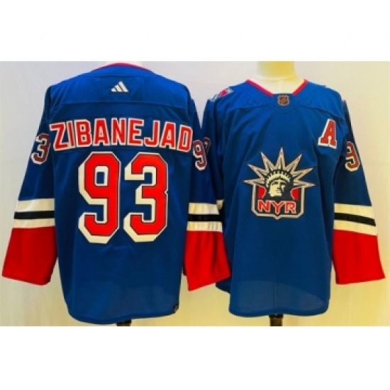 Men's New York Rangers #93 Mika Zibanejad Blue With A Stitched Hockey Jersey