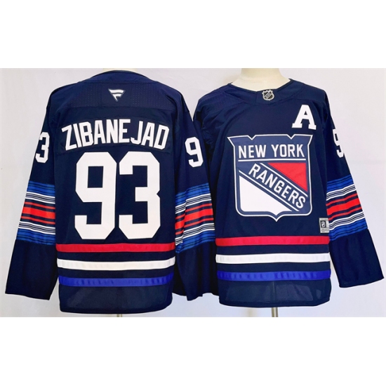 Men's New York Rangers #93 Mika Zibanejad Navy 2024-25 Stitched Jersey