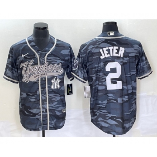 Men's New York Yankees #2 Derek Jeter Grey Camo Cool Base Stitched Baseball Jersey1