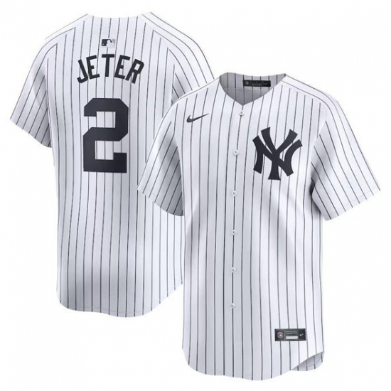 Men's New York Yankees #2 Derek Jeter White Home Limited Stitched Baseball Jersey