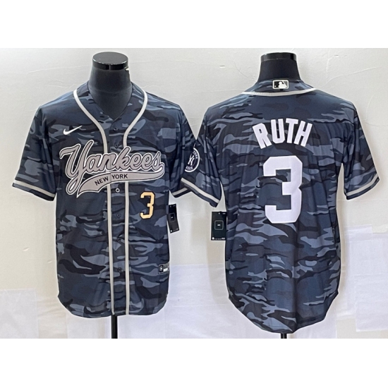 >Men's New York Yankees #3 Babe Ruth Numbre Grey Camo Cool Base Stitched Baseball Jersey