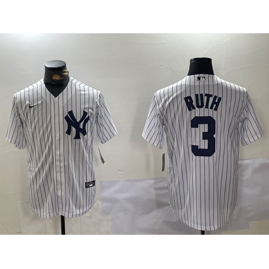 Men's New York Yankees #3 Babe Ruth White Pinstripe Without Name Fashion Cool Base Jersey