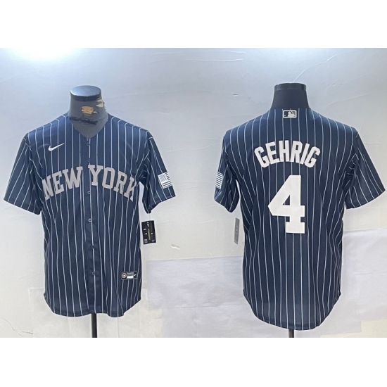 Men's New York Yankees #4 Lou Gehrig Navy Pinstripe Fashion Cool Base Jersey