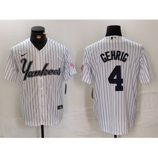 Men's New York Yankees #4 Lou Gehrig White Pinstripe Fashion Cool Base Jersey