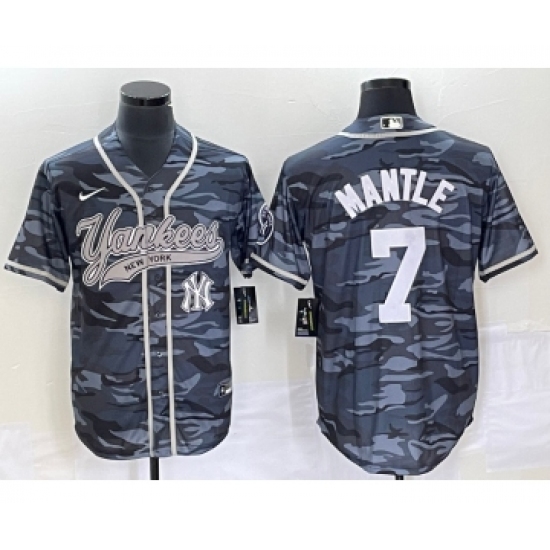 >Men's New York Yankees #7 Mickey Mantle Grey Camo Cool Base Stitched Baseball Jersey1