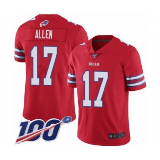 >Men's Nike Buffalo Bills #17 Josh Allen Limited Red Rush Vapor Untouchable 100th Season NFL Jersey