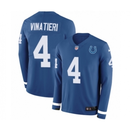 Men's Nike Indianapolis Colts #4 Adam Vinatieri Limited Blue Therma Long Sleeve NFL Jersey