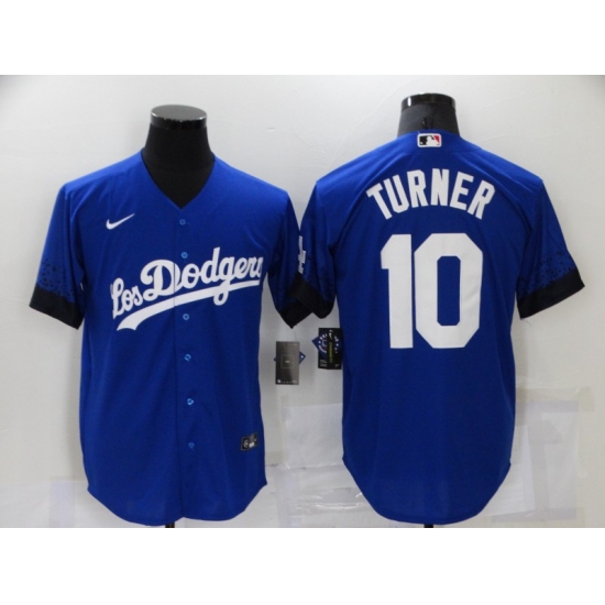 Men's Nike Los Angeles Dodgers #10 Justin Turner Blue Game City Player Jersey