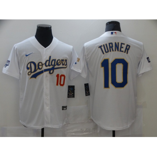 Men's Nike Los Angeles Dodgers #10 Justin Turner White Game Champions Authentic Jersey
