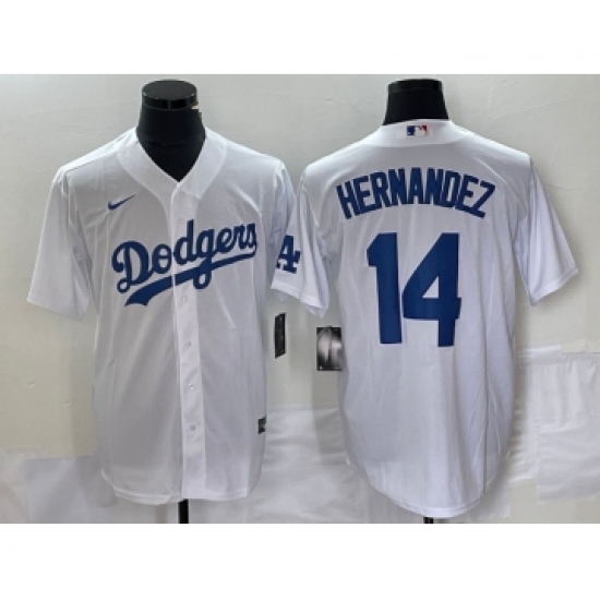 Men's Nike Los Angeles Dodgers #14 Enrique Hernandez Number White Stitched Cool Base Jersey