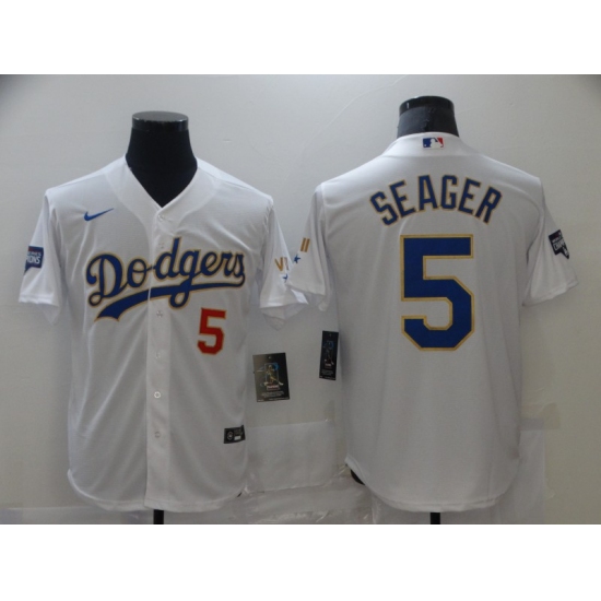 Men's Nike Los Angeles Dodgers #5 Corey Seager White Game Champions Authentic Jersey
