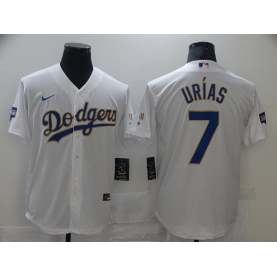 >Men's Nike Los Angeles Dodgers #7 Julio Urias White Game Champions Jersey