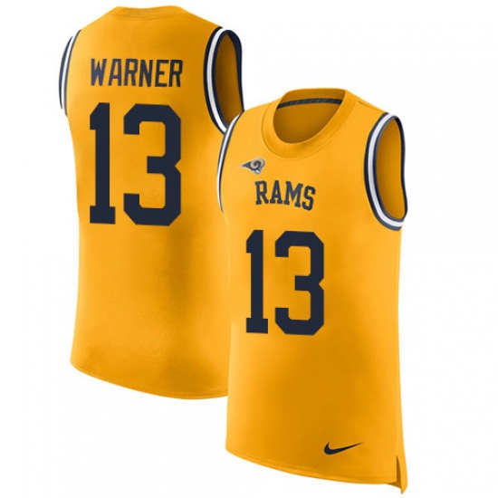 Home>NFL>Los Angeles Rams>Kurt Warner>Men's Nike Los Angeles Rams #13 Kurt Warner Limited Gold Rush Player Name & Number Tank Top NFL Jersey