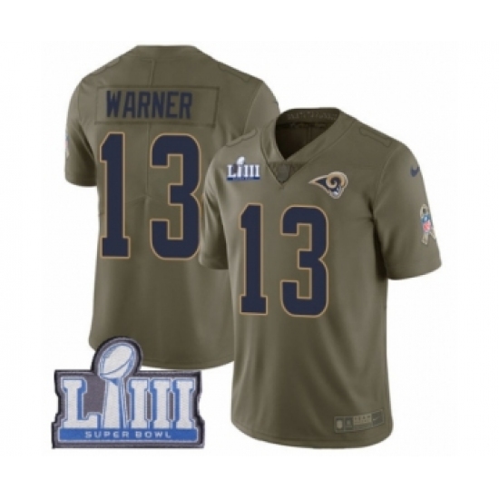 Men's Nike Los Angeles Rams #13 Kurt Warner Limited Olive 2017 Salute to Service Super Bowl LIII Bound NFL Jersey