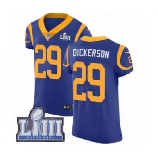 >Men's Nike Los Angeles Rams #29 Eric Dickerson Royal Blue Alternate Vapor Untouchable Elite Player Super Bowl LIII Bound NFL