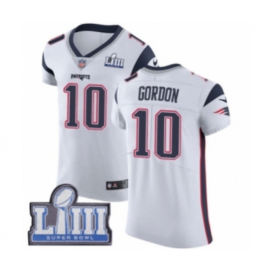 Men's Nike New England Patriots #10 Josh Gordon White Vapor Untouchable Elite Player Super Bowl LIII Bound NFL Jersey