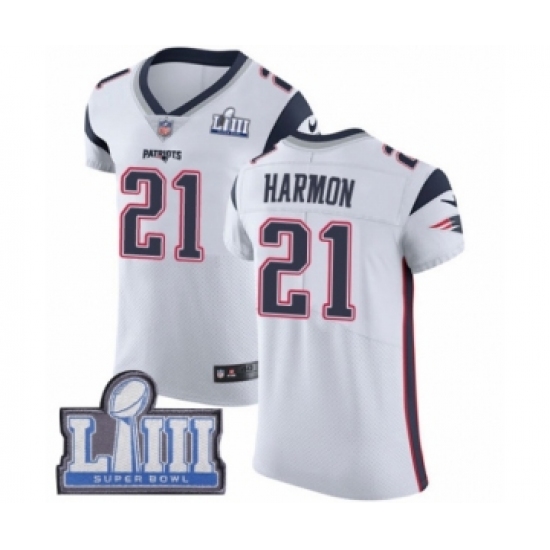 Men's Nike New England Patriots #21 Duron Harmon White Vapor Untouchable Elite Player Super Bowl LIII Bound NFL Jersey