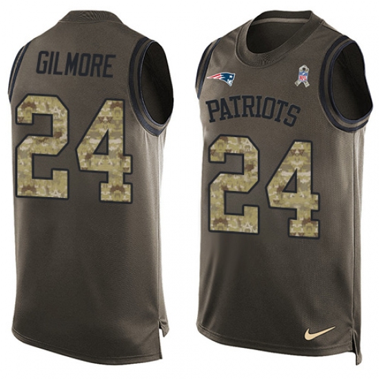 Home>NFL>New England Patriots>Stephon Gilmore>Men's Nike New England Patriots #24 Stephon Gilmore Limited Green Salute to Service Tank Top NFL Jersey
