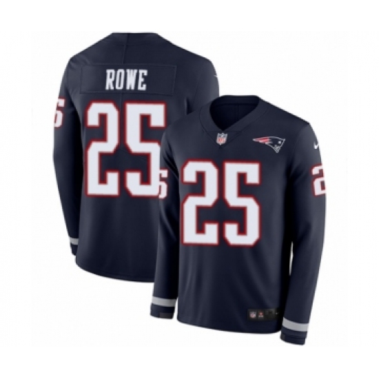 Men's Nike New England Patriots #25 Eric Rowe Limited Navy Blue Therma Long Sleeve NFL Jersey