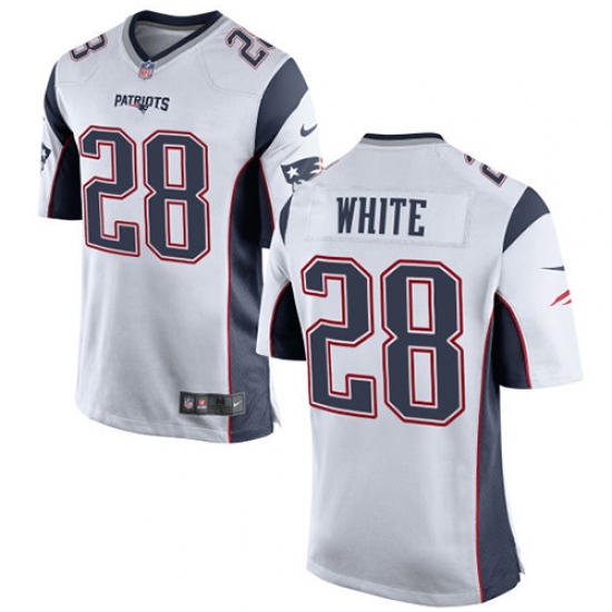 Men's Nike New England Patriots #28 James White Game White NFL Jersey