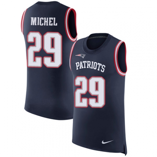 Men's Nike New England Patriots #29 Sony Michel Navy Blue Rush Player Name & Number Tank Top NFL Jersey