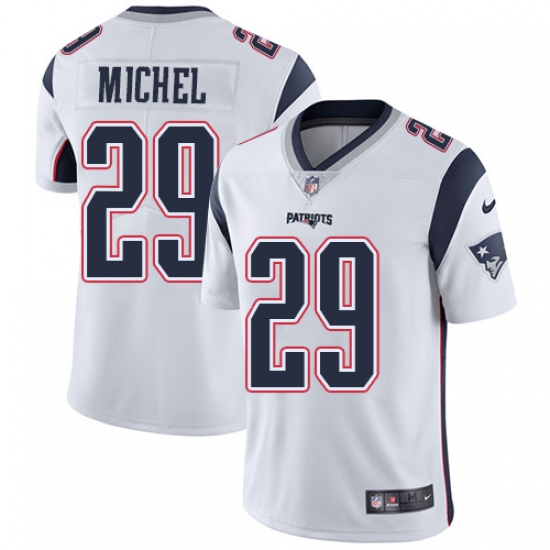 >Men's Nike New England Patriots #29 Sony Michel White Vapor Untouchable Limited Player NFL Jersey