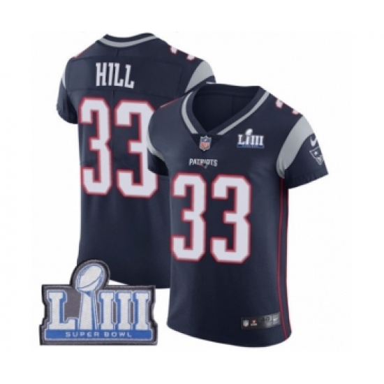 Men's Nike New England Patriots #33 Jeremy Hill Navy Blue Team Color Vapor Untouchable Elite Player Super Bowl LIII Bound NFL Jersey