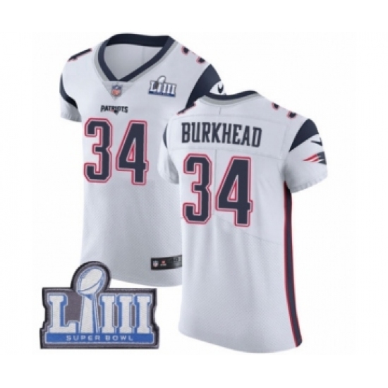 Men's Nike New England Patriots #34 Rex Burkhead White Vapor Untouchable Elite Player Super Bowl LIII Bound NFL Jersey