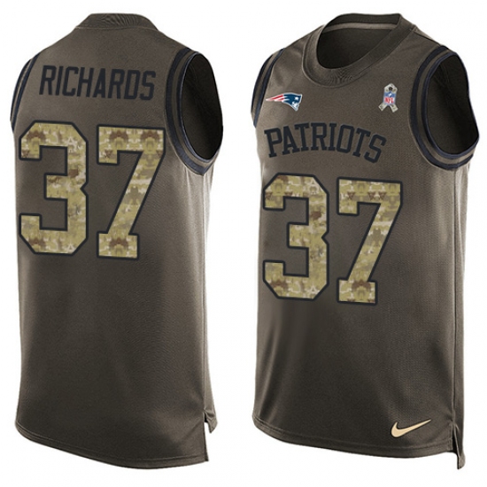 Home>NFL>New England Patriots>Jordan Richards>Men's Nike New England Patriots #37 Jordan Richards Limited Green Salute to Service Tank Top NFL Jersey