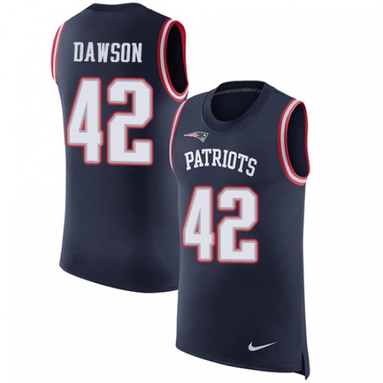 >Men's Nike New England Patriots #42 Duke Dawson Navy Blue Rush Player Name & Number Tank Top NFL Jersey