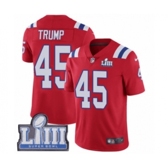 Men's Nike New England Patriots #45 Donald Trump Red Alternate Vapor Untouchable Limited Player Super Bowl LIII Bound NFL Jersey