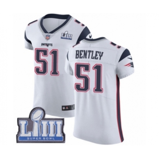 Men's Nike New England Patriots #51 Ja'Whaun Bentley White Vapor Untouchable Elite Player Super Bowl LIII Bound NFL Jersey