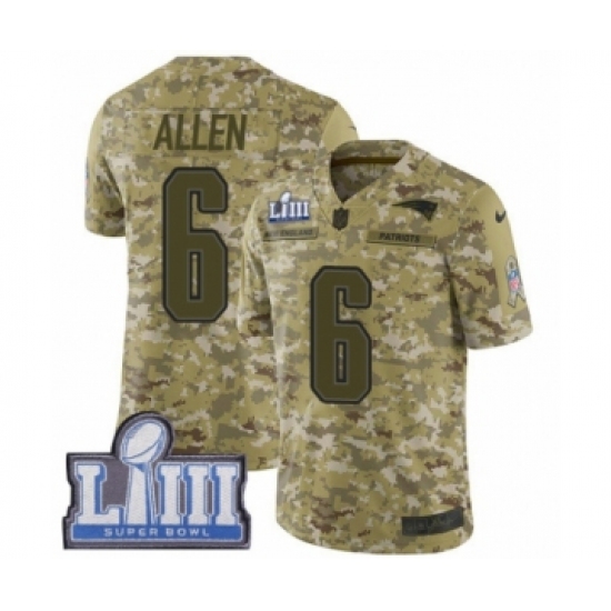 Men's Nike New England Patriots #6 Ryan Allen Limited Camo 2018 Salute to Service Super Bowl LIII Bound NFL Jersey